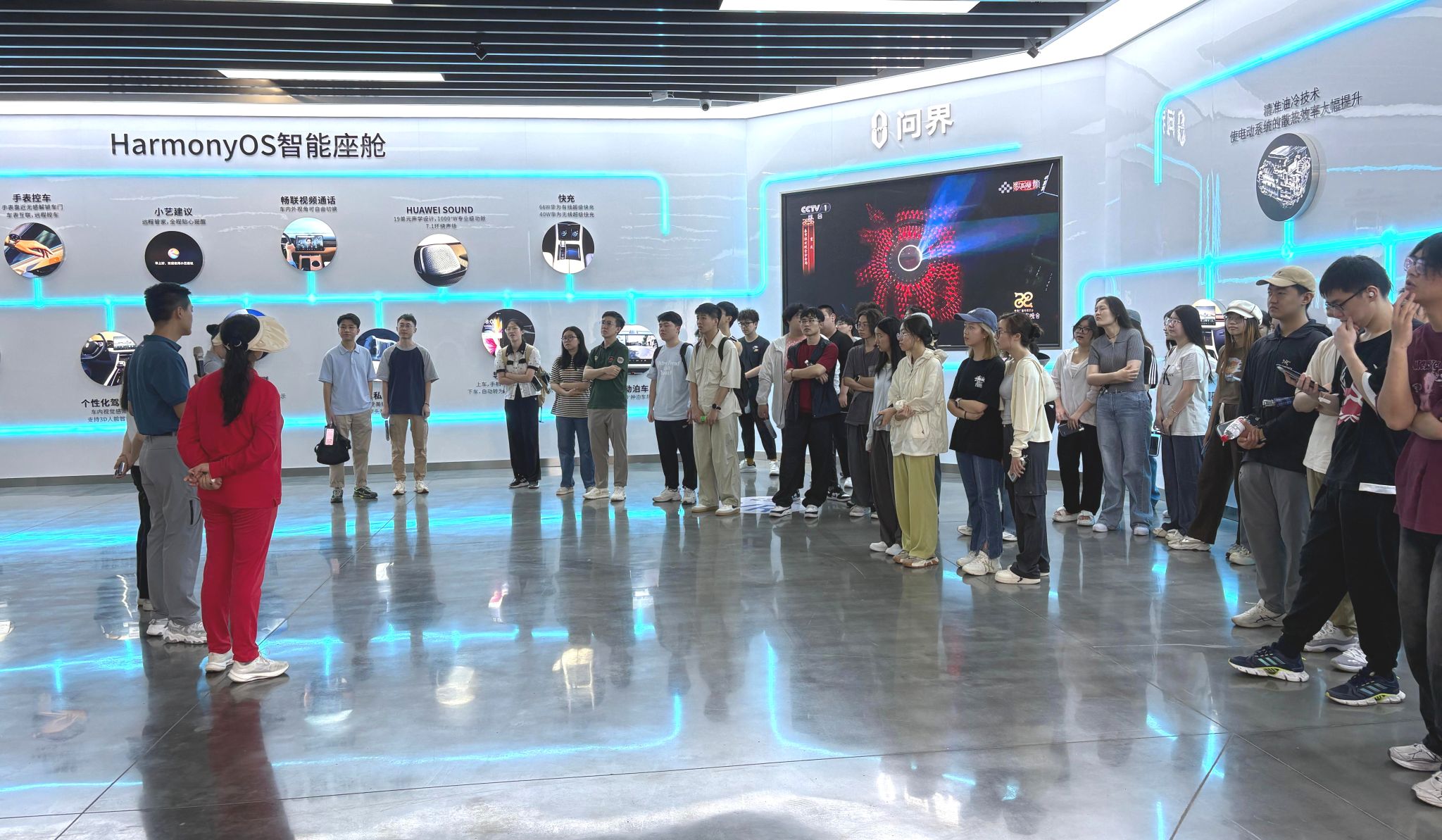 师生首先参观了企业展厅,系统了解赛力斯发展历程、组织架构及“1+1+N”产业链协同模式,并在讲解人员的邀请下试座体验问界系列新能源汽车。在生产车间,师生实地考察数字化生产线,学习物联网、大数据、5G与AI等前沿技术在智能制造中的深度应用,观摩实时质量监控系统如何提升生产效能。在互动交流环节,同学们就新能源汽车的技术创新、产业链协作以及智能制造等话题踊跃提问,企业技术团队现场答疑并分享了公司未来发展战略布局与技术前沿。活动尾声,李晓阳教授寄语西塔学子,她希望同学们能从移动课堂中汲取灵感,将所学知识应用于未来的学术规划和职业生涯,为社会经济发展与产业创新贡献力量!