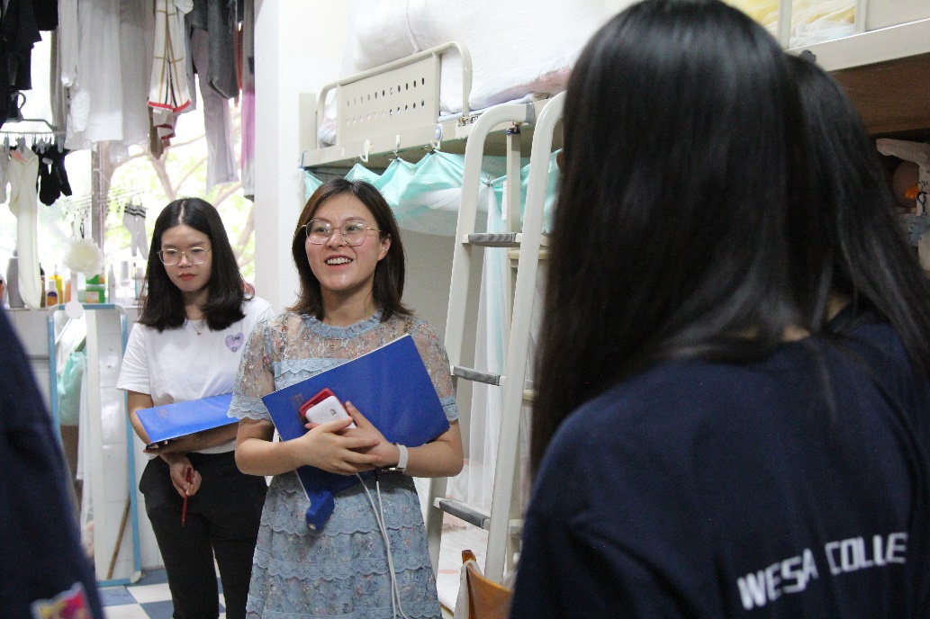 自4月25日启动比赛以来,经过线上投票和线下答辩两环节的角逐,最终有八间寝室进入线下考核决赛环节。公司各年级辅导员组成导师团出席决赛并担任评委。老师们逐一走访各寝室,围绕寝室环境、寝室文化、寝室制度和现场印象进行考核评分。环境方面主要在于内务卫生、装饰美化以及安全隐患;文化方面侧重于介绍寝室特色和寝室氛围;现场印象则是包括寝室成员参与度、仪容仪表以及解说效果。