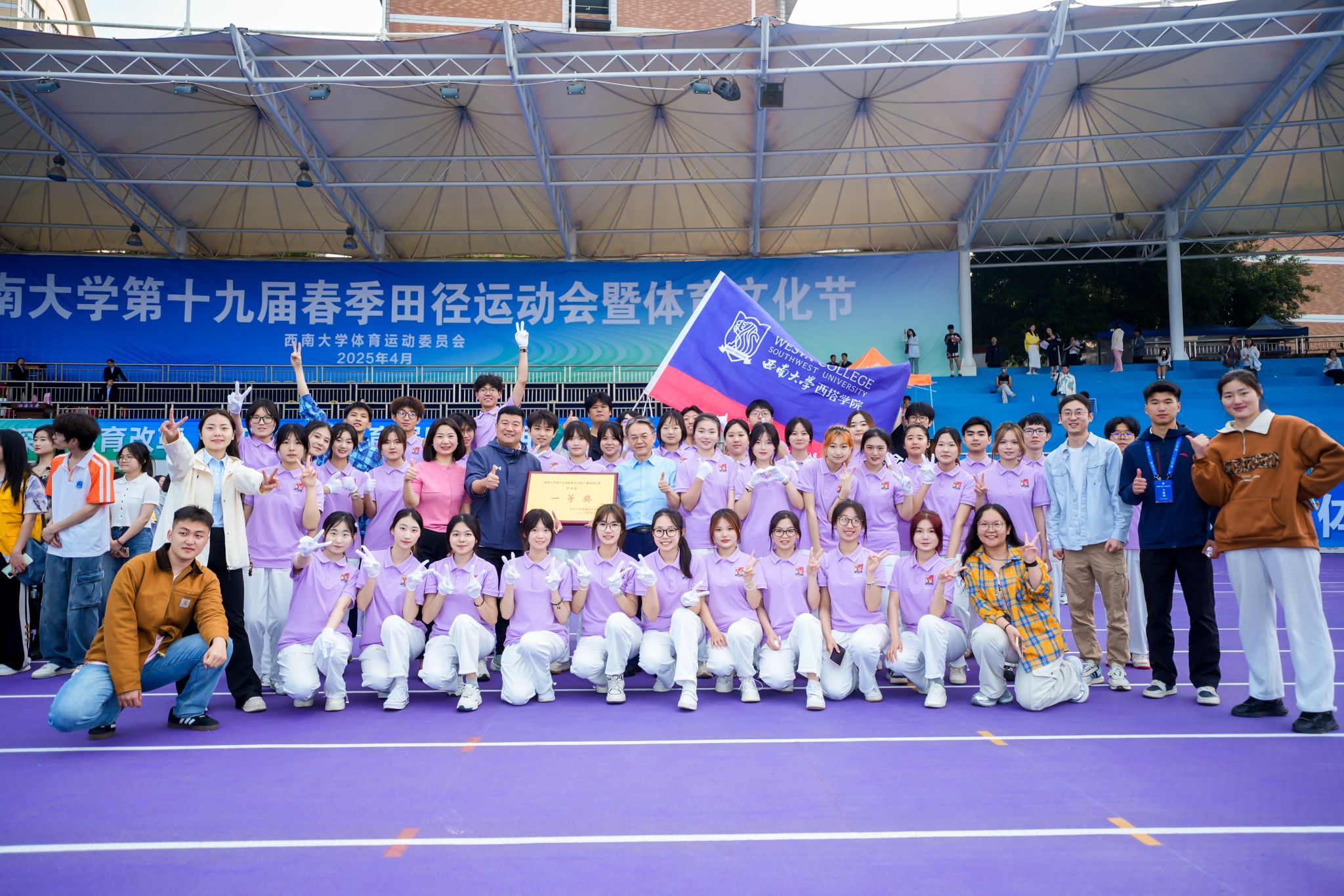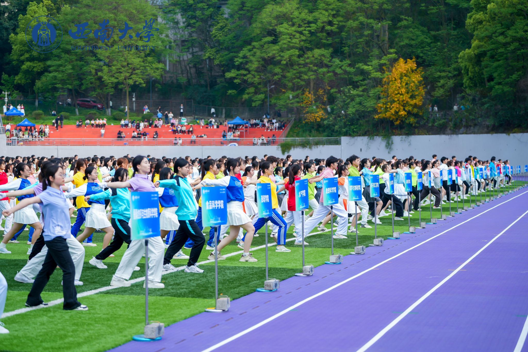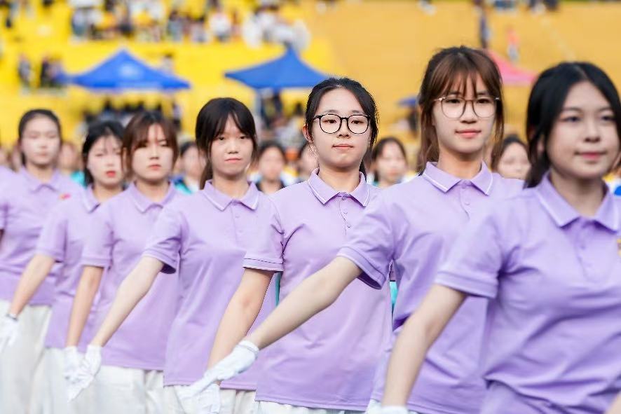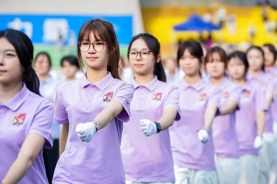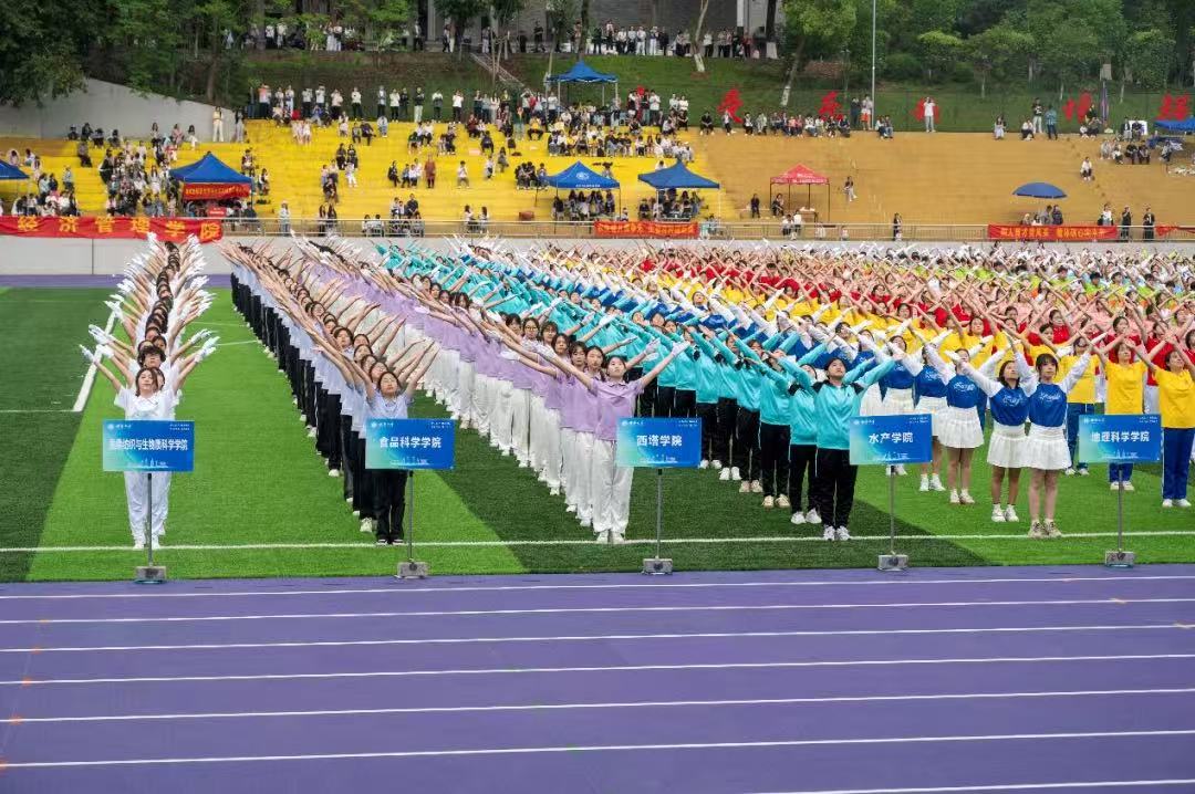 行进过程中,“西塔新青年,中西学并兼;心向寰宇阔,报国意志坚”的口号声如洪钟般响彻全场,这激昂的口号,展现出西塔学子坚定的信念与豪迈的气魄。由“家国情怀”“国际视野”“创意精英”以及三校校徽组成的主题方阵,队列整齐有序,彰显出西塔学子多元的风采与蓬勃的朝气。他们身着大方得体的院服,脸上洋溢着自信的神情,成为运动会开幕式上一道亮丽的风景线,赢得现场观众的阵阵掌声。