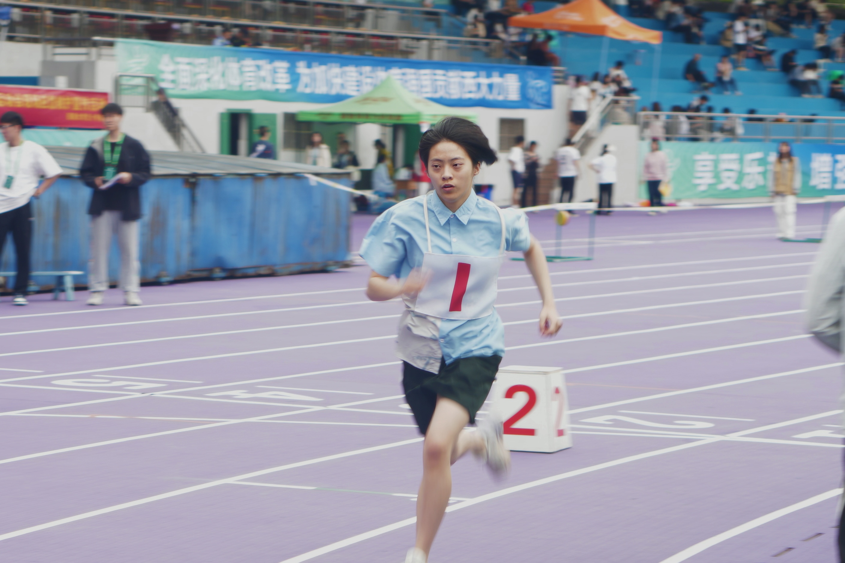 竞技场上,运动员们咬紧牙关向前冲刺!短跑选手如箭离弦;跳远的身影像弹簧般腾空;铅球甩出的完美弧线划破天际,汗水顺着发梢飞洒,手臂绷紧爆出青筋,每一步都带着拼尽全力的嘶吼!观众席的加油声浪中,西塔运动员们正把青春砸进这片滚烫的跑道!