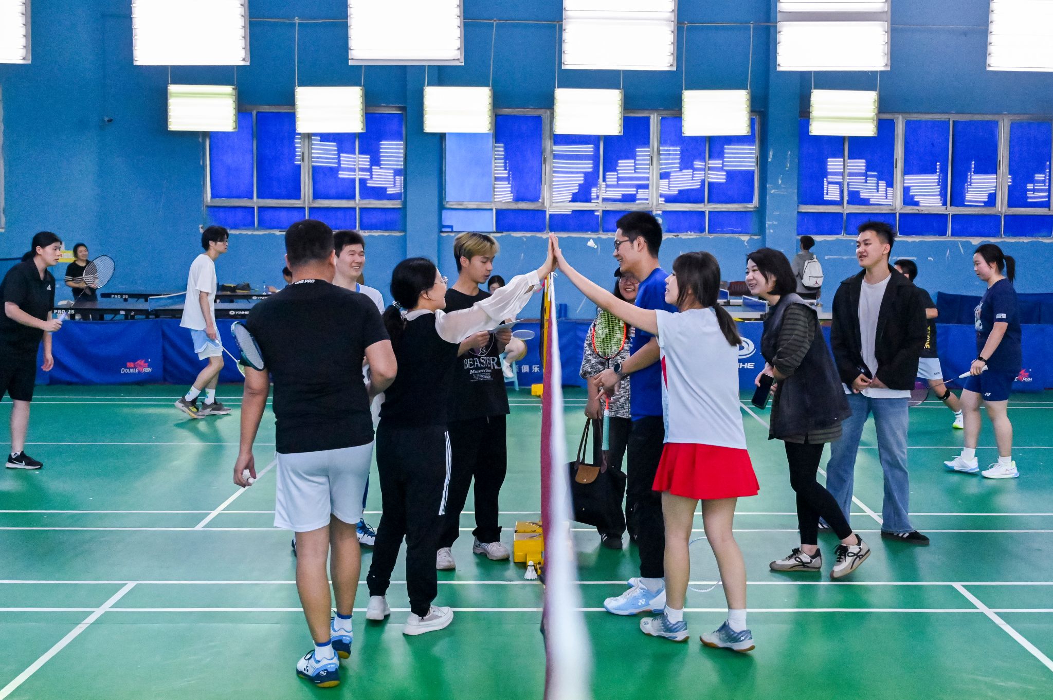 员工选手亦展现出初生牛犊的锐气,敏捷的网前扑杀、凌厉的底线扣杀频频向老师们发起挑战。单打对决中,数十回合的多拍拉锯扣人心弦,双方在耐力与技巧的博弈中尽显体育精神;双打赛场上,师生组合默契十足,眼神交汇间已完成战术配合。精妙的轮转、巧妙的吊球赢得满堂喝彩,比分牌上的数字交替攀升,将赛事氛围推向顶点。