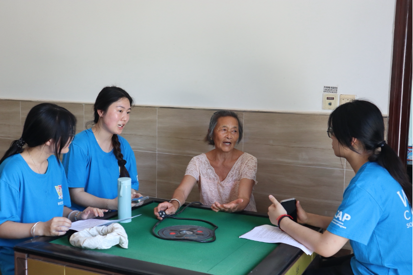 午后,实践团分成5个小组顶着39℃高温开展入户调研。队员们穿行于乡间小道,汗水浸透衣衫却丝毫未减热情,从产业发展到民生保障,从基础设施到文化生活,他们用真诚叩开一户户家门,深入了解乡村发展的真实面貌。