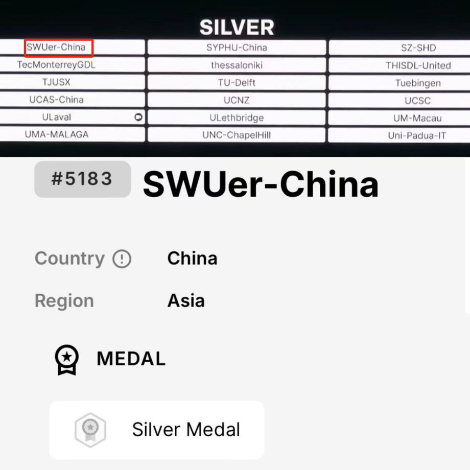 10月27日,享有“合成生物学领域奥林匹克”美誉的2024年国际基因工程机器大赛(iGEM)获奖名单正式揭晓,由太阳集团tyc1512021级生物技术杨烨宁担任队长,2022级生物技术专业孔德智、蒋佳颖、闫星谕任组长以及杨晨、王紫姗和傅秋菡组成的“SWUer-China”团队,凭借《AFPScan: Use deep learning to guide the research of antifungal polypeptides(AFPScan:利用深度学习指导抗真菌多肽的研究)》项目的精彩表现,荣获全球银奖。