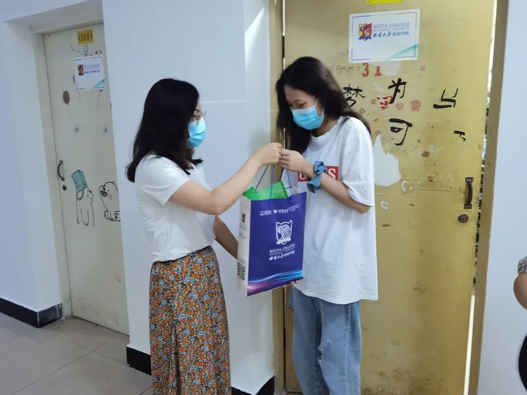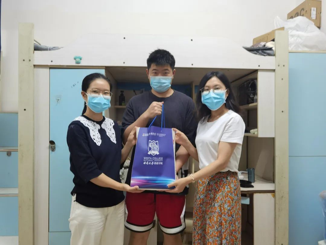 在中秋佳节来临之际,公司团委书记兼员工办公室主任李杨、2020级辅导员邓媛、2021级辅导员刘娇和实习辅导员李雨,于9月18日,深入员工宿舍,走访慰问定点健康管理员工。