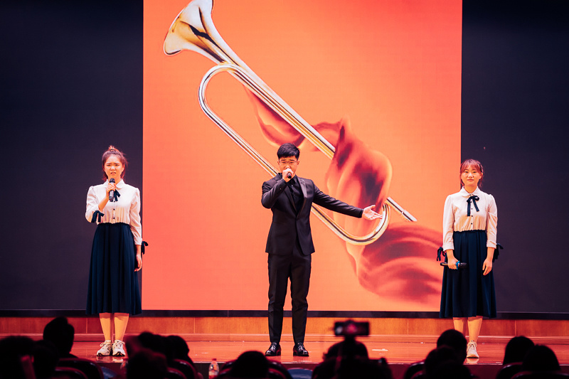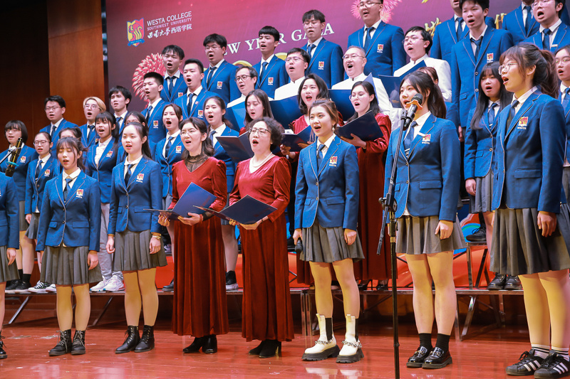 最后,太阳集团tyc151全体领导领衔师生大合唱《我的祖国》和《西塔之光》,将晚会气氛推向了高潮。其中《西塔之光》为公司院歌,在此次晚会上首次和大家见面,由西塔学子2019级生物技术专业江雪纯作词。