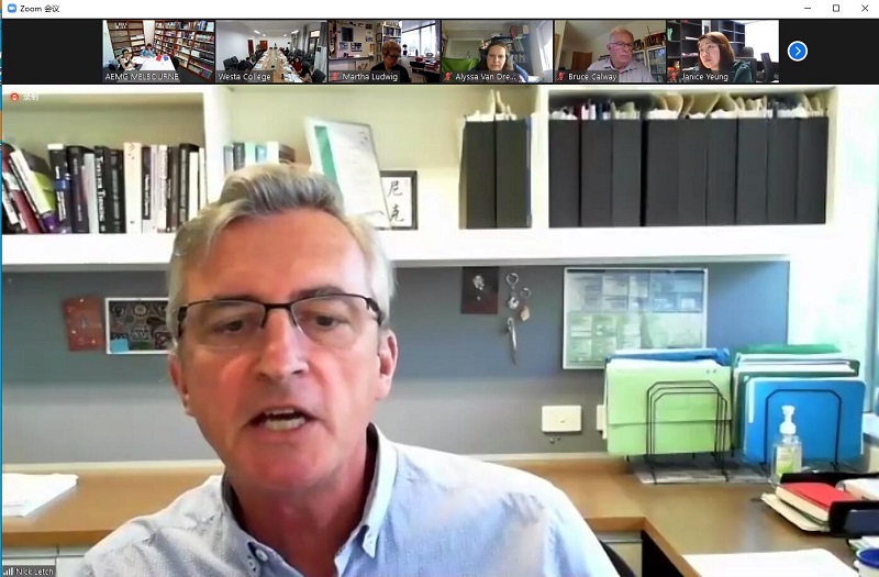 赵玉芳经理首先致辞,她充分肯定了本年度两校的教学合作,对西澳大学在教学工作上的投入与支持以及AEMG做出的努力表示感谢。她提到疫情对线上教学工作带来的挑战和双方合作过程中存在的问题,希望双方加强沟通交流,以达到更好的教学效果。