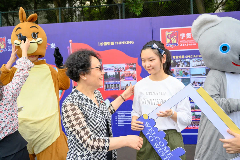 西大校门挥别双亲