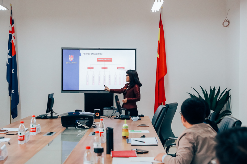 赵玉芳经理从公司基本概况、党建与思想政治工作、公司产品工作、国际合作与交流、财务管理、综合楼改造等方面做了汇报。同时对公司发展面临的问题以及下一步的工作思路进行了阐述。王静书记就公司的办学定位、运行机制、党建工作以及培养方案的实施与修订等方面提出了建议。