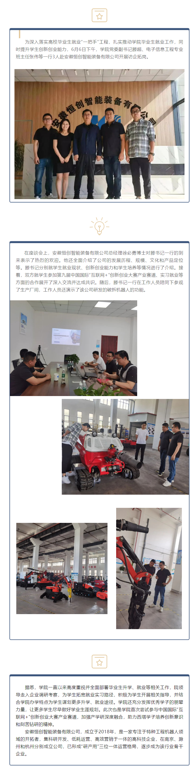 公司党委副书记滕超一行赴安徽恒创智能装备有限公司开展访企拓岗行动