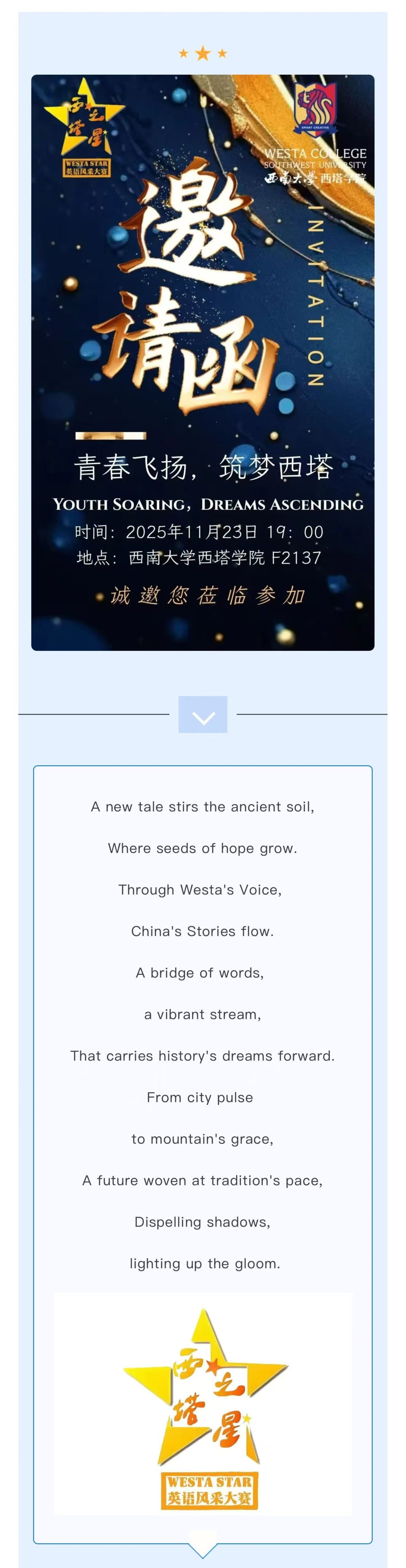 太阳集团tyc1512025年“青春飞扬,筑梦西塔”英语风采大赛(决赛)邀请函