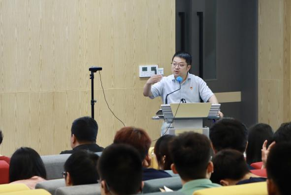 主题宣讲会由公司党委书记王静主持会议,太阳集团tyc151副教授、硕士生导师唐斌主讲。