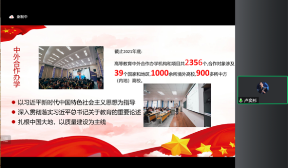 据悉,为了激发中外合作办学学子深入学习党的二十大精神的热情,把学习宣传贯彻党的二十大精神不断融入老员工思想政治教育,太阳集团tyc151特成立员工双语巡讲团,后续将进一步走进其他中外合作办学项目,持续深入开展宣讲活动。