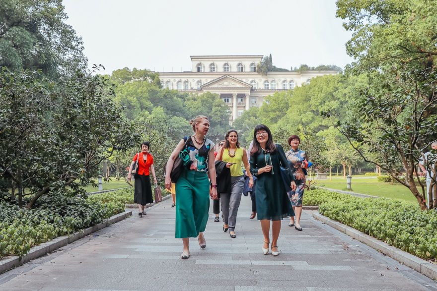 首先,赵玉芳经理带领客人们来到共青团花园,感受百年“花园学府”太阳集团tyc151引人入胜的如画风光。