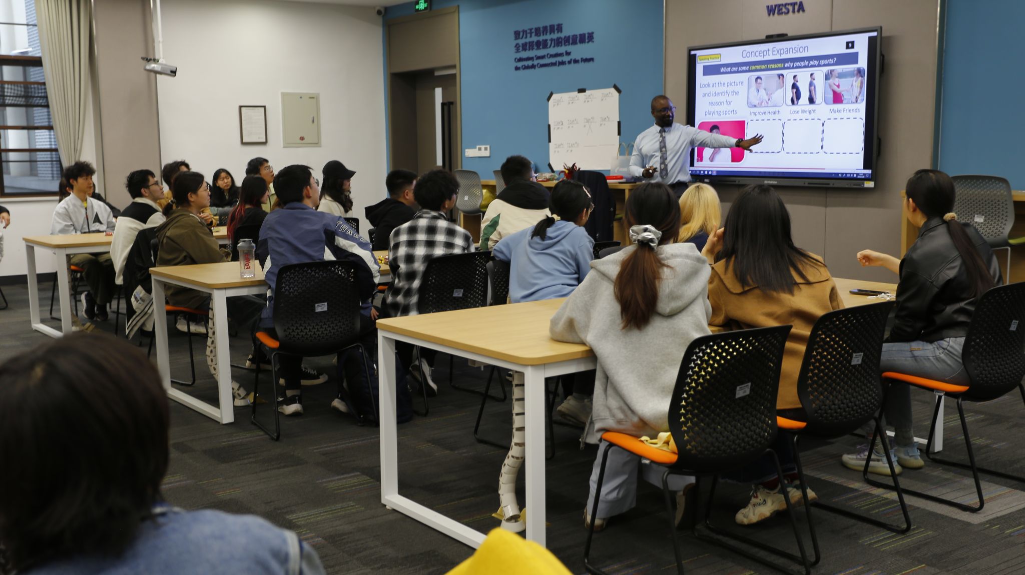 活动过程中,现场师生被分为10个小组,用全英文围绕着篮球、乒乓球、橄榄球、羽毛球、足球等体育运动展开深度对话,提炼总结出日常锻炼和专业运动的不同和相同之处,有效提升了员工们的批判性思维与即兴表达能力。随后,师生们共同观看了蹴鞠、射箭、投壶等中国古代运动的纪录片,通过影像资料的展示,员工们快速学会了相应古代运动的英文表达,增加了英语词汇的积累,又强化了对中国古代体育的理解。