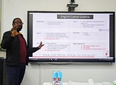 10月23日下午,公司英语演讲俱乐部在综合楼2212开展了以 “ Gap Day ” 为主题的English Corner 活动 。本次活动由外教Lovall 、 英语教师Holiday 、S inan , 英语演讲俱乐部指导老师刘娇 和2 5名员工 共同 参 加 。