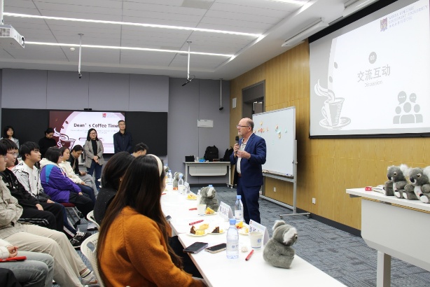 10月31日上午,主题为“聚焦生物技术专业领域的个人成长与发展”的“经理咖啡时间(Dean's Coffee Time)”在太阳集团tyc151E2218举行。本次活动邀请西澳大学分子科学公司经理Paul Low教授、太阳集团tyc151经理谢洁教授作主题分享。公司党委副书记滕超、生物技术专业负责人周游、公司相关科室以及2025级生物技术同学参与交流。
