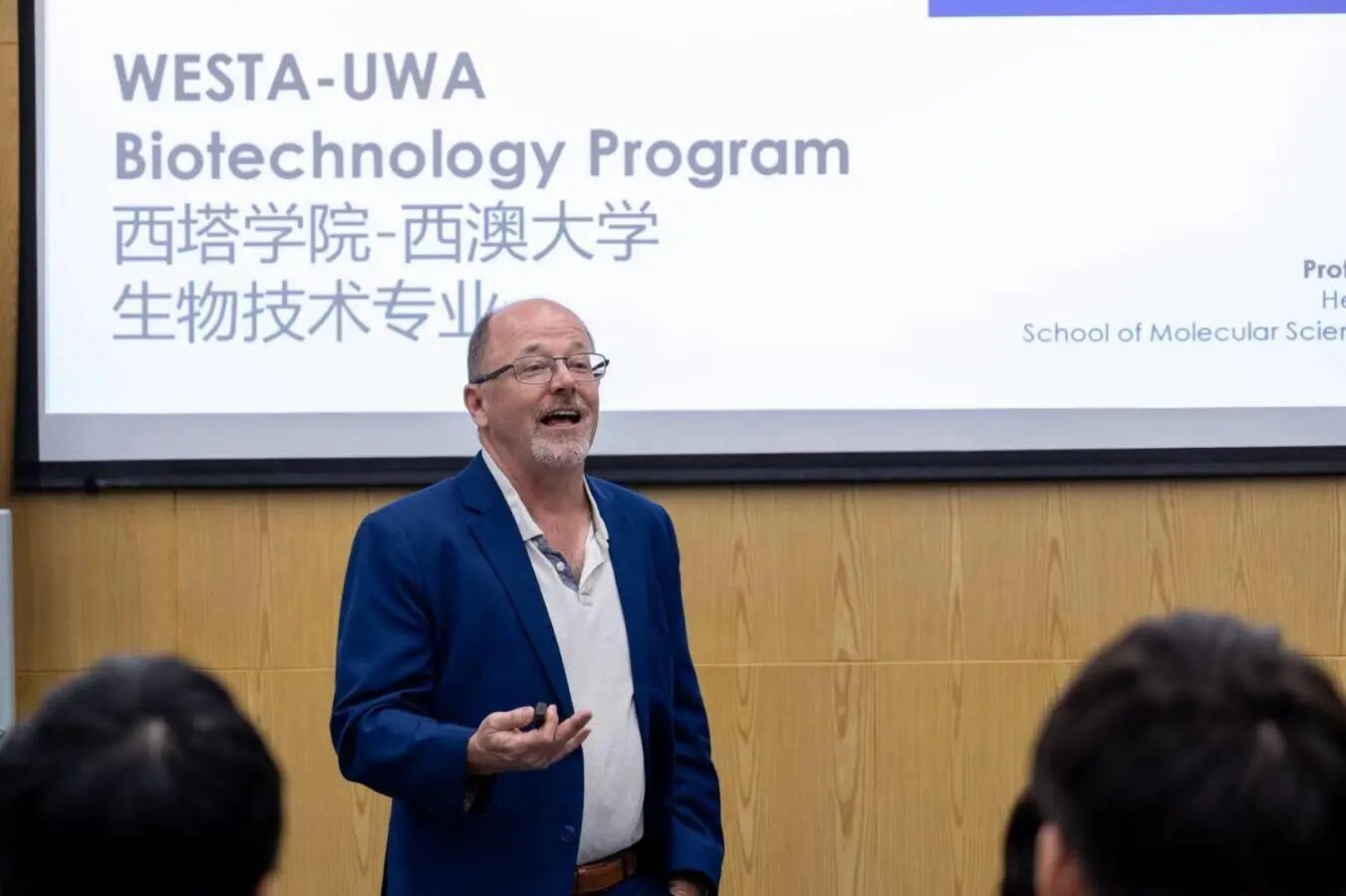 Paul Low教授首先向同学们描绘了西澳大学独特的科研成果与地理优势。他详细阐述了生物技术专业的培养模式,并深入分析了全球生物技术领域的热点交叉研究方向与广阔的行业前景。他以自己的研究经历为例,让同学们对生物技术这一专业有了更深刻的认识。同时,Paul Low教授鼓励同学们要努力“走出去”,在不同文化背景下实现学术与个人职业发展。
